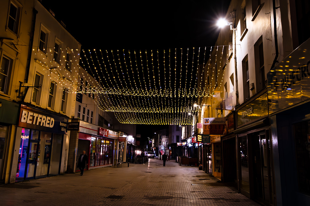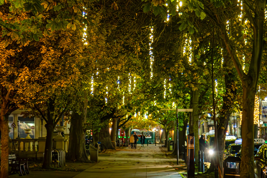After proposing uplighters in the trees around the main pedestrian area in an effort to keep installation costs down, the BID felt like more impact was needed. We worked closely with the BID to compromise on a solution that created a bigger impact whilst offsetting costs.