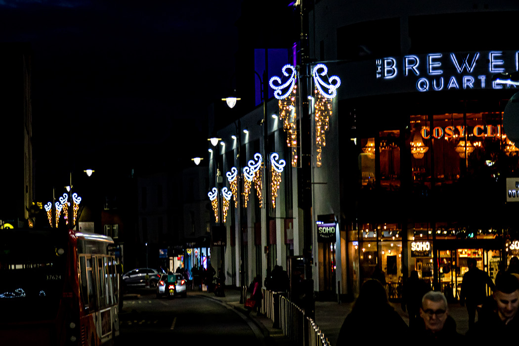 After winning the tender for the second time, we worked closely with the BIDs operation manager to deliver a scheme that showed off the town centre using big, bold motifs, with the centre piece of the scheme being a large 3D reindeer motif on the roundabout entrance to Montpelier.