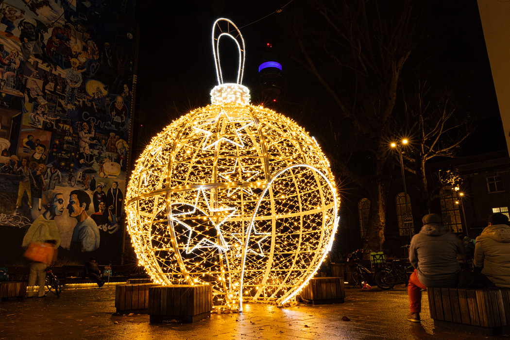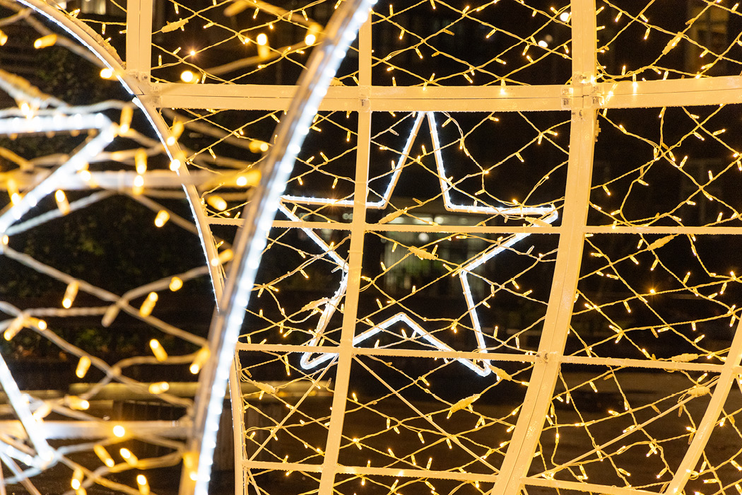 Since 2023, the giant walk-through Bauble with Stars has been very popular addition to the scheme and has become a