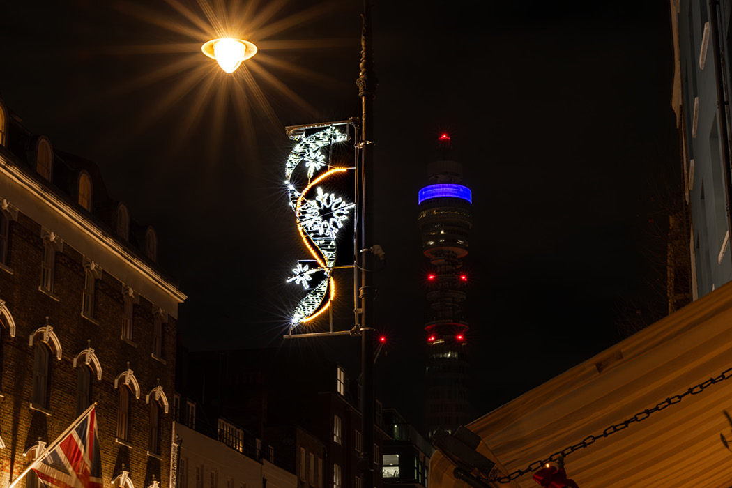 Fitzrovia BID has enhanced the scheme with a bespoke GOBO and incorporated iconic photo opportunities.