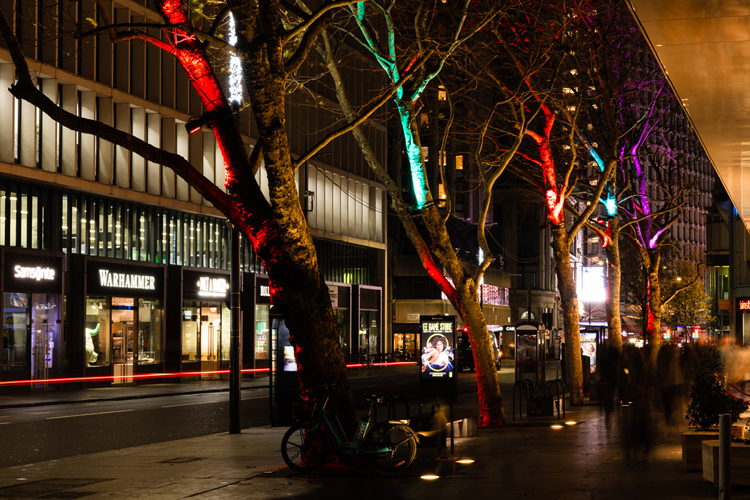 Whilst some elements of the original scheme can still be seen, such as the light bubbles in the trees along Charlotte Street,