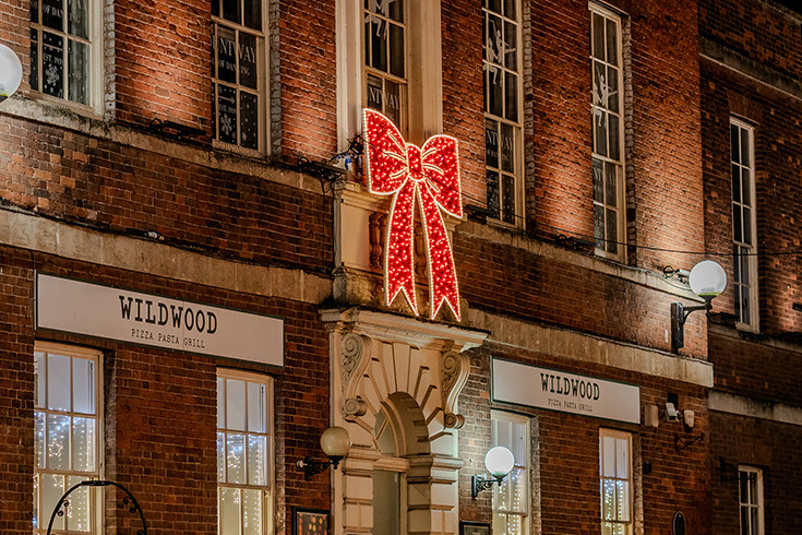 In 2024, after almost a decade of working with Taunton through a series of tenders, we delivered a refreshed and more ambitious festive lighting scheme. Historically, the scheme was shaped by budget limitations, resulting in a more modest display made up of standard motifs and familiar elements. However, for the 2024 season, we developed a proposal using selected elements from previous concepts, paired with exciting new features to help elevate the overall experience.